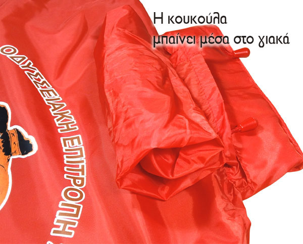 Μπουφάν αδιάβροχο αντιανεμικό με κουκούλα με έκτυπωση στάμπας για προστασία από τον αέρα και τη βροχή. Διαφημιστικό αντιανεμικό σε Προσφόρα με φερμουάρ ιδανικό για επαγγελματίες και ιδώτες για καθημερινή χρήση. Η κουκούλα μπαίνει μέσα στο γιακά αν δεν χρησιμοποιείτε και κλείνει με φερμουάρ.