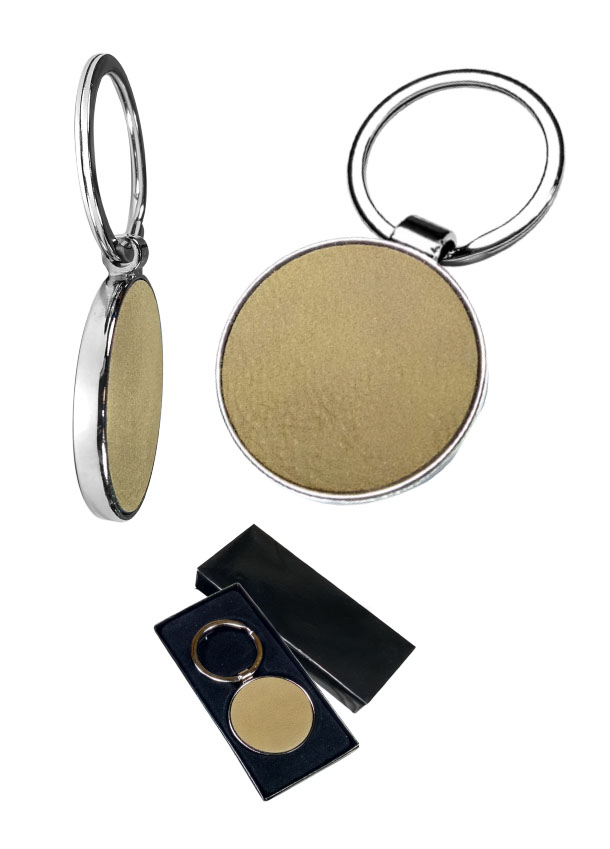 Μπρελόκ με εκτύπωση σε σχήμα στρόγγυλο για κλειδιά, με 2 όψεις απο δερματίνη. Η εκτύπωση στο μπρελόκ γίνεται στη δερματίνη στην 1 η 2 πλευρές. Στο μπρέλοκ μεταλλικό μπορεί να γίνει τύπωμα όπως: κείμενο, λογότυπο η σχέδιο και μέχρι χρώματα.