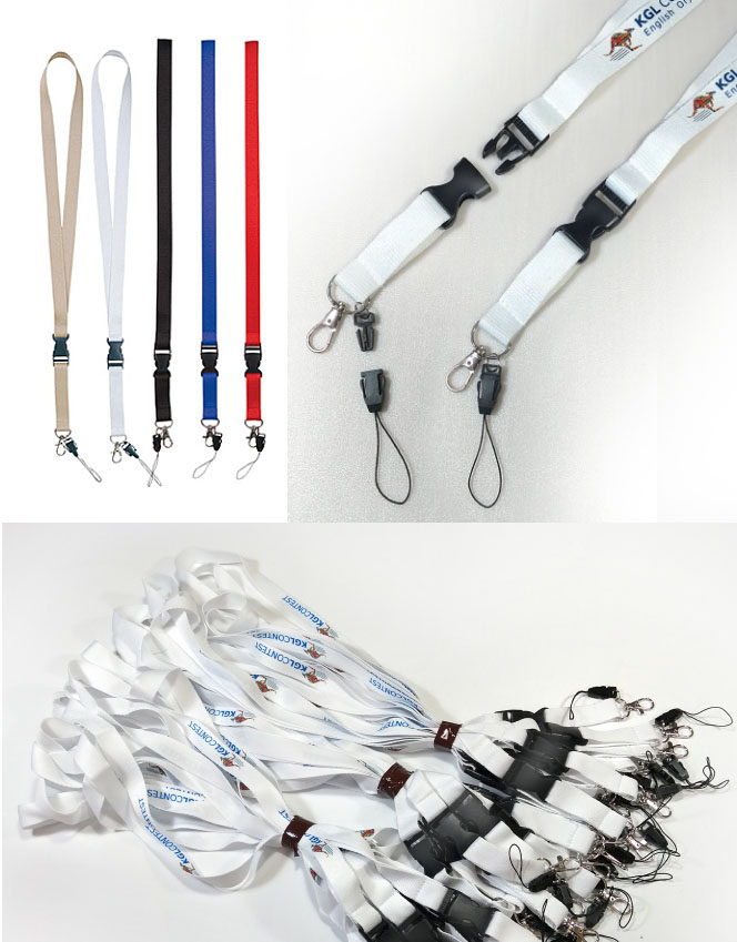 Πολυεστερικό κορδόνι λαιμού με μεταλλικό κλιπ και αποσπώμενο πρακτικό κορδονάκι κινητού σε διαφορα χρώματα. Η εκτύπωση γίνετε στην 1 πλευρα σε 2 σημεία, με την μέθοδο μεταξοτυπίας (στάμπα) η εγχρωμή εκτύπωση sublimation (μόνο σε άσπρα κορδόνια)